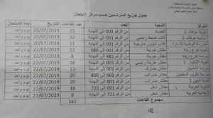 وبإمكان الراغبين في الاطلاع على أماكن إجراء الامتحان مطالعة الصورة أدناه التي توضح توزعة المتسابقين على دفعات انطلاقا من أرقام أوصال الترشح التي سلموا بعد تقديم ملفات ترشحهم.