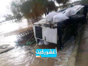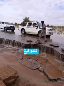 وقد حطمت السيول مقاطع من طريق الأمل ، مقطع آغشوركيت-ألاك بينما جرفت عدة سيارات وحطمت باصا كان يقل مواد غذائية دون تسجيل أضرار بشرية حتا الآن .