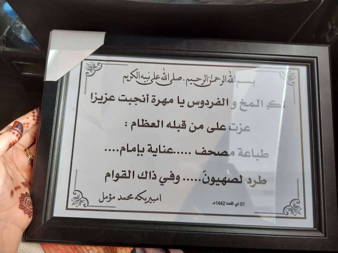 أثناء تقديمها واجب العزاء للرئيس السابق السيد محمد ولد عبد العزيز قدمت الكاتبة امبيركة محمد مؤمل هدية خاصة احتوت ابيات من الشعر من انتاجها الخاص تثني فيها على اعماله الاسلامية كطباعة المصحف وطرد سفير الصهاينة من بلادنا وبعض الانجازات الأخرى