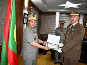وشح قائد الأركان العامة للجيوش الفريق مختار بله شعبان، صباح اليوم بقيادة الأركان العامة للجيوش ، بوسام فارس في الاستحقاق الوطني للنقيب خافيير مدينا، مسؤول التعاون العسكري في السفارة الإسبانية بعد انتهاء فترة عمله في موريتانيا.