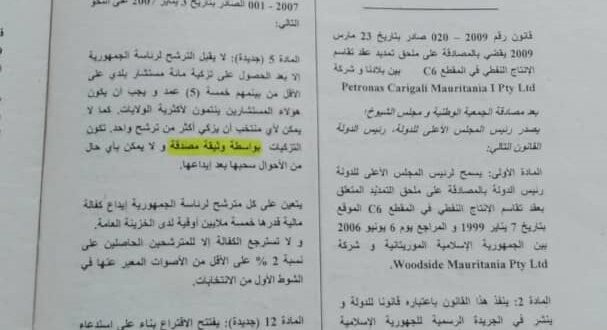 وأكد المجلس في رسالة وجهها لمنسق هيئة دفاع عزيز المحامي محمدن ولد اشدو، أن هذه النصوص – وهي القانون النظامي رقم: 021/2009 الصادر بتاريخ: 2 أبريل 2009، والمرسوم رقم: 2012 – 278 الصادر: 17 دجمبر 2012 – تجعل من غير الممكن وجود اسم ولد عبد العزيز ضمن اللائحة المؤقتة للمرشحين.