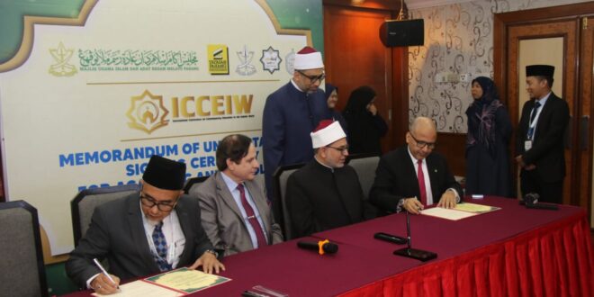 ووقع الاتفاقية رئيس جامعة العلوم الإسلامية محمدو لمرابط أجيد، و رئيس جامعة السلطان أحمد شاه الإسلامية ببهانج، محمد زوا‌ۏي بن زين العابدين.