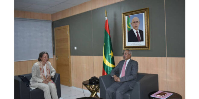 استقبل معالي وزير الدفاع الوطني السيد حننه ولد سيدي ، أمس الخميس في مكتبه بمقر الوزارة في نواكشوط سفيرة جمهورية المانيا الاتحادية المعتمدة لدى موريتانيا سعادة السيدة إيزابيل هنين.