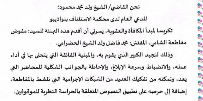المدعي العام في نواذيبو يهنئ مفوض الشامي