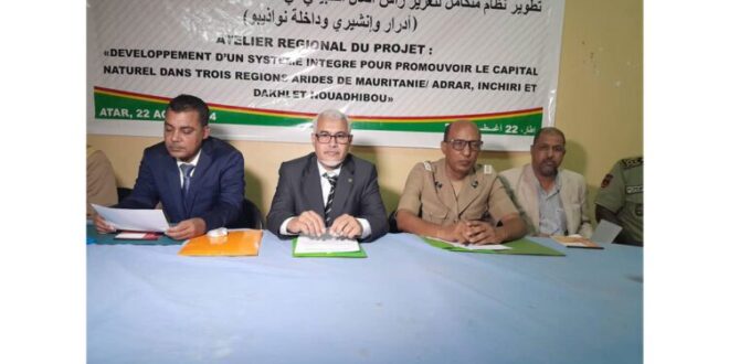 أشرف والي آدرار، السيد عبد الله ولد محمد محمود، صباح اليوم الخميس بمدينة أطار، على انطلاق ورشة عمل حول مشروع تطوير نظام متكامل لتعزيز رأس المال الطبيعي في ثلاث مناطق قاحلة في موريتانيا (آدرار-انشيري-نواذيبو)،