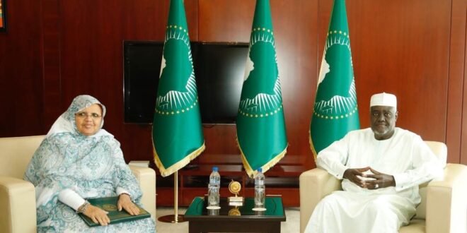 جاء ذلك خلال تسليمها رسالة من الرئيس الموريتاني محمد ولد الشيخ الغزواني الرئيس الدوري للاتحاد الإفريقي، إلى موسى فقي محمد رئيس مفوضية الاتحاد الإفريقي.