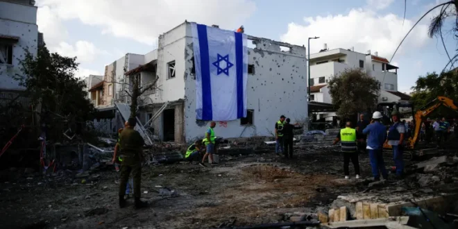 آثار قصف سابق من جنوب لبنان على مستوطنة كريات بياليك في منطقة حيفا (رويترز)