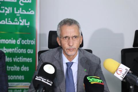 ترأس معالي مفوض حقوق الإنسان والعمل الإنساني والعلاقات مع المجتمع المدني السيد: سيد أحمد بنان، صباح اليوم الخميس، بفندق فصك في العاصمة نواكشوط، حفلا منظما من طرف الهيئة الوطنية لمحاربة الاتجار بالأشخاص وتهريب المهاجرين، التابعة للمفوضية، لتسليم منح لتمويل أنشطة مدرة للدخل لصالح عدد من ضحايا الاتجار بالأشخاص.