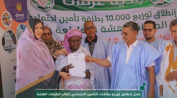 أطلق عمدة بلدية عرفات محمد محمود ولد أحمد جدو صباح السبت 09 نوفمبر 2024م، عملية توزيع 10.000 بطاقة تأمين اجتماعي لأصحاب الأمراض المزمنة، وذوي الاحتياجات الخاصة، والأشخاص الأقل دخلا من سكان المقاطعة.