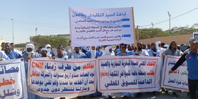 تجددت احتجاجات الصيادين التقليديين أمس الإثنين أمام مبنى ولاية نواذيبو للمطالبة بتلبية مطالبهم.