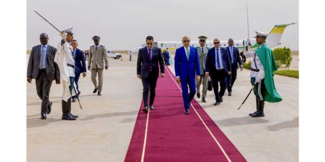 واستقبل فخامة رئيس الجمهورية بمطار نواكشوط الدولي أم التونسي من طرف معالي الوزير الأول السيد المختار ولد أجاي، ومعالي الوزير الأمين العام لرئاسة الجمهورية السيد مولاي ولد محمد لغظف، ومعالي الوزيرين المستشارين برئاسة الجمهورية السيد محمد ولد عبد الله ولد عثمان، والسيدة عيشاتا با يحيى، ومعالي وزير العدل السيد محمد محمود ولد الشيخ عبدالله بن بيه، ومعالي وزير الداخلية وترقية اللامركزية والتنمية المحلية، السيد محمد احمد ولد محمد الأمين، والمديرة المساعدة لديوان رئيس الجمهورية السيدة غانديغا فاتيماتا، ووالي نواكشوط الغربية السيد امربيه ربو ولد بونن ولد عابدين، ورئيسة جهة نواكشوط السيدة فاطمة بنت عبد المالك.