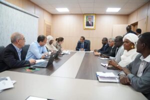 عقد معالي المندوب العام للتضامن الوطني ومكافحة الاقصاء السيد الشيخ ولد بد اليوم الاثنين بمقر المندوبية في نواكشوط جلسة عمل مع بعثة من البنك الدولي برئاسة السيدة ماركو فينيز، رئيسة مشروع شبكات الأمان الاجتماعي في البنك الدولي.