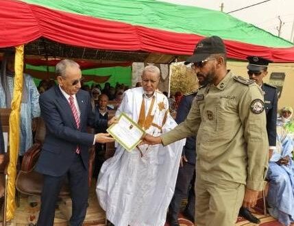 ضابط الشرطة الشيخ إبراهيم قائد السرية الرابعة لحفظ النظام المتنقل بمدينة كيهيدي الذي تولى إلقاء الكلمة الرسمية خلال الاحتفالية قال إن تكريم المفوض محمد ولد الطالب وزملائه جاء تقديرا “لجهودهم التي بذلوها خدمة للوطن والمواطن”، معتبرا احتفالية الشرطة بعيدها “فرصة حقيقية يتجدد فيها العهد على حماية الوطن والمواطنين بكل إخلاص وتفان”