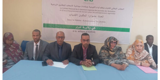 أشرف مدير ديوان والي آدرار، السيد العالم ولد شمد، اليوم السبت بمدينة أطار، على افتتاح أشغال دورة تكوينية منظمة من طرف المجلس الوطني للشباب، لصالح أصحاب المشاريع الزراعية بالولاية، تحت عنوان:(تمكين الشباب).