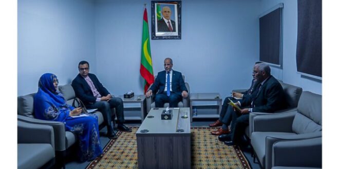 استقبل معالي وزير التكوين المهني والصناعة التقليدية والحرف السيد محمد ماء العينين ولد أييه، اليوم الاثنين في مكتبه بمقر الوزارة في نواكشوط، الممثل المقيم لمنظمة الأمم المتحدة للطفولة “اليونيسيف” في موريتانيا سعادة السيد الكبير علاوي.