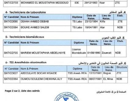 أعلنت إدارة المصادر البشرية بشركة اسنيم لائحة المترشحين الناجحين في مسابقة اختيار الطاقم شبه الطبي.