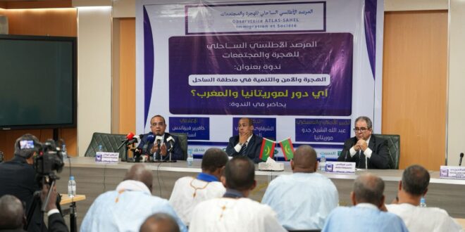 نظم المركز الأطلسي الساحلي للهجرة والمجتمعات مساء اليوم ندوة حول الهجرة والأمن والتنمية في منطقة الساحل، تحت عنوان “أي دور لموريتانيا والمغرب؟” وذلك بمشاركة مختصين في مجالات الأمن والتنمية والهجرة.