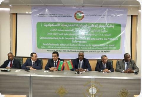 أطلقت مفوضية حقوق الإنسان والعمل الإنساني والعلاقات مع المجتمع المدني، اليوم (الخميس) في نواكشوط، ملتقى تحسيسيا يشارك فيه ممثلو منظمات المجتمع المدني الناشطة في مجال حقوق الإنسان والهيئات النقابية، وممثلين عن الهيئات الحكومية العاملة في هذا المجال؛ وذلك في إطار الأنشطة والفعاليات المخلدة لليوم الوطني لمحاربة الممارسات الاستعبادية.