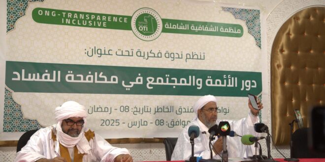 وقال رئيس المنظمة السيناتور محمد ولد غدة إن المجتمع، شهد تحولا يتطلب نقاشا حول دور المجتمع والنخبة الموجهة له وعلى رأسهم الأئمة في مكافحة الفساد.