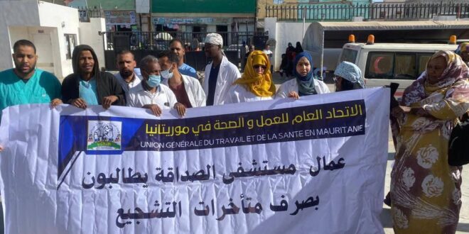 نظم عمال مستشفى الصداقة، المنضوون تحت نقابات الاتحاد العام للعمل والصحة والنقابة الموريتانية للقابلات، اليوم وقفة احتجاجية للمطالبة بصرف متأخرات علاوات المداومة والتشجيع، والالتزام بمواعيد صرفها المحددة مسبقًا.