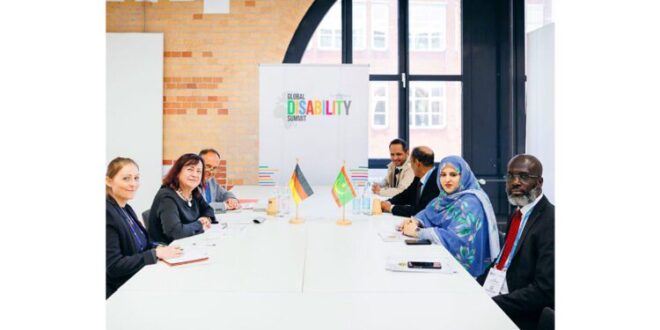 التقت معالي وزيرة العمل الاجتماعي والطفولة والأسرة السيدة صفية بنت انتهاه، صباح اليوم الخميس على هامش القمة العالمية الثالثة للإعاقة، بمدينة برلين، كاتبة الدولة بوزارة التعاون الاقتصادي الألمانية، السيدة باربيل كوفلير.