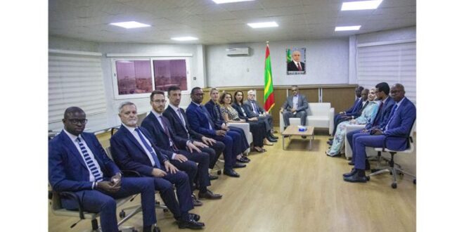 عقد معالي وزير الطاقة والنفط، السيد محمد ولد خالد، اليوم الإثنين بنواكشوط، جلسة عمل مع بعثة أوروبية لبحث الاستثمار في مجالات الطاقة والهيدروجين وبناء الشبكات الكهربائية.