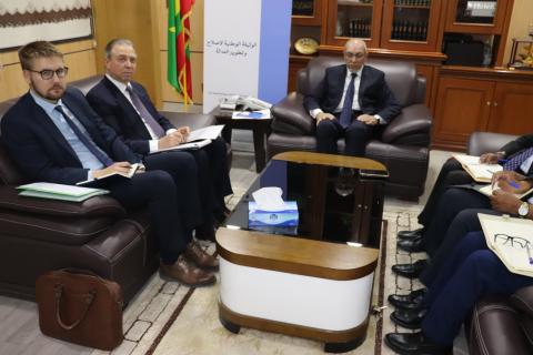 حضر اللقاء إلى جانب صاحب المعالي كل من السادة: محمد أحمد عيده، الأمين العام للوزارة، أعمر ولد القاسم المستشار المكلف بالتعاون، منت أحميد بنت التكرور المستشارة المكلفة بالاتصال والنفاذ للعدالة، الحسين الشيخ كبادي مدير التعاون والتعاون القضائي البيني بالوزارة.