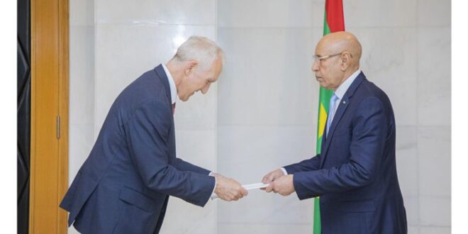 تسلم فخامة رئيس الجمهورية، السيد محمد ولد الشيخ الغزواني، اليوم الخميس بالقصر الرئاسي في نواكشوط، أوراق اعتماد سعادة السيد غي هاريسون، بوصفه سفيرا فوق العادة وكامل السلطة للمملكة المتحدة لدى الجمهورية الإسلامية الموريتانية.