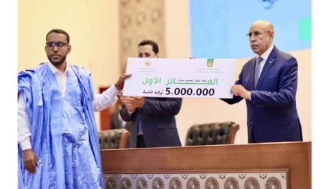 أشرف الرئيس محمد ولد الشيخ الغزواني، صباح اليوم الخميس، بالمركز الدولي للمؤتمرات في العاصمة نواكشوط، على حفل تكريم الفائزين في مسابقة النسخة الخامسة من جائزة رئيس الجمهورية لحفظ وفهم المتون المحظرية.