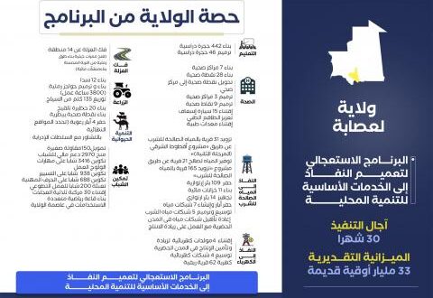 استعرضت البعثة الوزارية إلى ولاية لعصابه برئاسة وزير الوظيفة العمومية والعمل السيد محمد ولد اسويدات، في اجتماع اليوم الأحد بمدينة كيفه، التدخلات التي تم اعتمادها في الولاية ضمن البرنامج الاستعجالي لتعميم النفاذ إلى الخدمات الضرورية للتنمية المحلية، بناء على النقاشات التي جرت في المنتديات الجهوية للتخطيط التنموي التشاركي في شهر يناير الماضي.