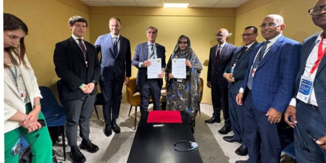 وقعت معالي وزيرة البيئة والتنمية المستدامة، السيدة مسعودة بحام محمد لغظف، أمس الأربعاء بمدينة نيس الفرنسية، مع نائب وزير البيئة والأمن الطاقي الإيطالية، السيناتور كلاوديو بربارو، مذكرة تفاهم لتعزيز التعاون الثنائي في مجالي البيئة والعمل المناخي.