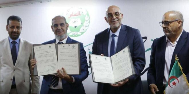 وقع حزب التجمع الوطني للإصلاح والتنمية “تواصل” وحركة مجتمع السلم بالجزائر بروتكول تعاون وشراكة، لتعزيز التعاون في القضايا المشتركة بين الطرفين، وتبادل الخبرات في مجالات التكوين، العمل الحزبي، والمؤسساتي، والشبابي، والنسائي، والمجتمعي.