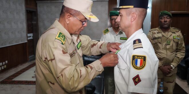 وشح قائد الأركان العامة للجيوش الفريق محمد فال الرايس، صباح اليوم الثلاثاء، ثلاثة ضباط فرنسيين بوسام فارس في نظام الاستحقاق الوطني.
