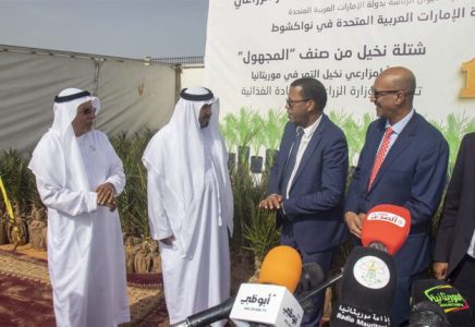 تسلمت موريتانيا من الأمانة العامة لجائزة خليفة الدولية لنخيل التمر والابتكار الزراعي بالتعاون مع سفارة دولة الإمارات العربية المتحدة في نواكشوط اليوم الأربعاء، 1000 شتلة نخيل من صنف “المجھول” دعما لمزارعي نخيل التمر في موريتانيا.