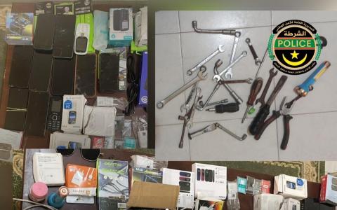 ووجدت الشرطة بحوزة الشابين آلات كسر وفك استخدمت في ارتكاب الجرئم.