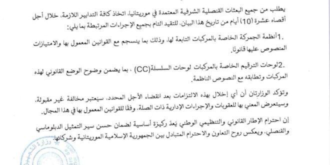 وطلبت الوزارتان في بيان مشترك من هذه البعثات “اتخاذ الإجراءات الجمركية اللازمة خلال أجل أقصاه عشرة أيام”.