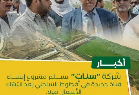 أشرف المدير العام للشركة الوطنية للاستصلاح الزراعي والأشغال “سنات”، السيد خطري ولد العتيق، اليوم الأربعاء على تسليم مشروع إنشاء قناة جديدة في أفطوط الساحلي بعد انتهاء الأشغال فيه.