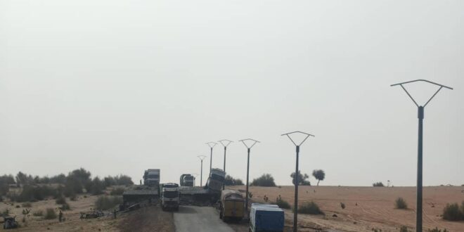 وأوضحت المصادر أن السيارات الصغيرة تمكنت من مواصلة السير بعد أن لجأت إلى مسار رملي موازٍ للطريق الرئيسي، أعد بشكل غير رسمي من طرف السكان المحليين، فيما توقفت حركة الشاحنات والمركبات الكبيرة كليا، بسبب ضيق المسلك وصعوبة العبور فيه.