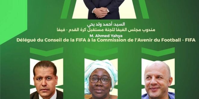 اختار الاتحاد الدولي لكرة القدم عضو مجلسه التنفيذي؛ ورئيس الاتحادية الموريتانية لكرة القدم، أحمد ولد يحي، مندوب مجلس الفيفا للجنة مستقبل كرة القدم، ضمن لجانه الفنية الرسمية التي أعلن عنها في أعقاب اجتماعه الأخير.