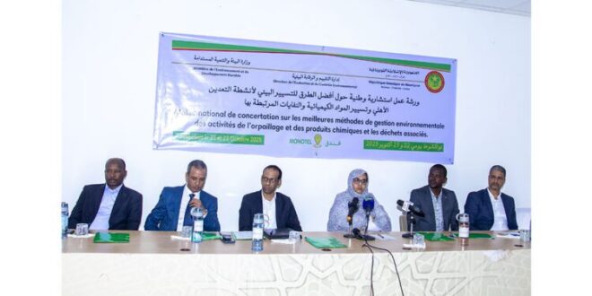 اشرفت وزيرة البيئة والتنمية المستدامة السيدة مسعودة بنت بحام محمد لغظف اليوم الأربعاء في نواكشوط على انطلاق اعمال ورشة عمل استشارية وطنية تحت عنوان: “أفضل الطرق للتسيير البيئي لأنشطة التعدين الأهلي وتسيير المواد الكيميائية والنفايات المرتبطة بها”، بمشاركة ممثل اتحادية مصانع الذهب، ورؤساء اتحاديات ونقابات التعدين الأهلي، وعدد من منظمات المجتمع المدني، وممثلي القطاعات الوزارية المعنية.