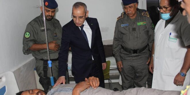 زار وزير الداخلية محمد أحمد ولد محمد الأمين، رفقة قائد أركان الحرس الوطني الفريق إبراهيم فال ولد الشيباني، مساء اليوم الاثنين، المستشفى العسكري للاطمئنان على حالة عناصر الحرس الوطني بعد حادث سير ليلة البارحة.