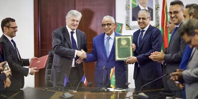 وقع وزير الاقتصاد عبد الله ولد سليمان ولد الشيخ سيديا مع الوزير المنتدب للتجارة الخارجية والاستثمار الفرنسي نيكولاس فوريسييه، اليوم الثلاثاء في العاصمة نواكشوط، على اتفاقية قرض ميسّر لتمويل مشروع إنشاء 10 محطات شمسية مزوّدة بوحدات تخزين.