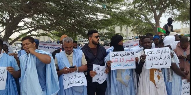نظم عشرات الصيادين التقليديين في مدينة نواذيبو، وقفة احتجاجية، على تأجيل استئناف أنشطة الصيد.