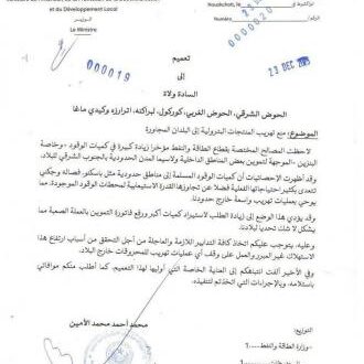 جاء ذلك عبر تحذير موجه من وزارة الداخلية واللامركزية إلى الولاة في ولايات الحوضين وكوركل ولبراكنة واترارزه وكيدي ماغا .