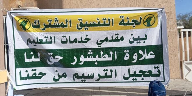 وأكد المحتجون أن من حقهم الحصول على هذه العلاوة المخصصة للخطر، مثلما يحصل عليها باقي المدرسين، مشددين على ضرورة تحسين وضعهم الوظيفي والمعيشي.