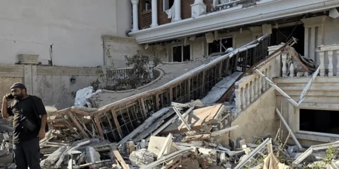 وأظهرت مشاهد بثها التلفزيون الرسمي الإيراني واجهة المبنى وقد نُسفت بالكامل، مع تناثر الأنقاض في الشارع المحيط.