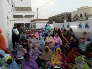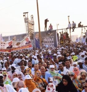 مهرجانا حاشدا في مقره بتفرغ زينة ترأسته السيدة صفية بنت بمب عضو الحملة الوطنية للنساء وذلك نيابة عن الرئيسة عيشه فال فرجس.