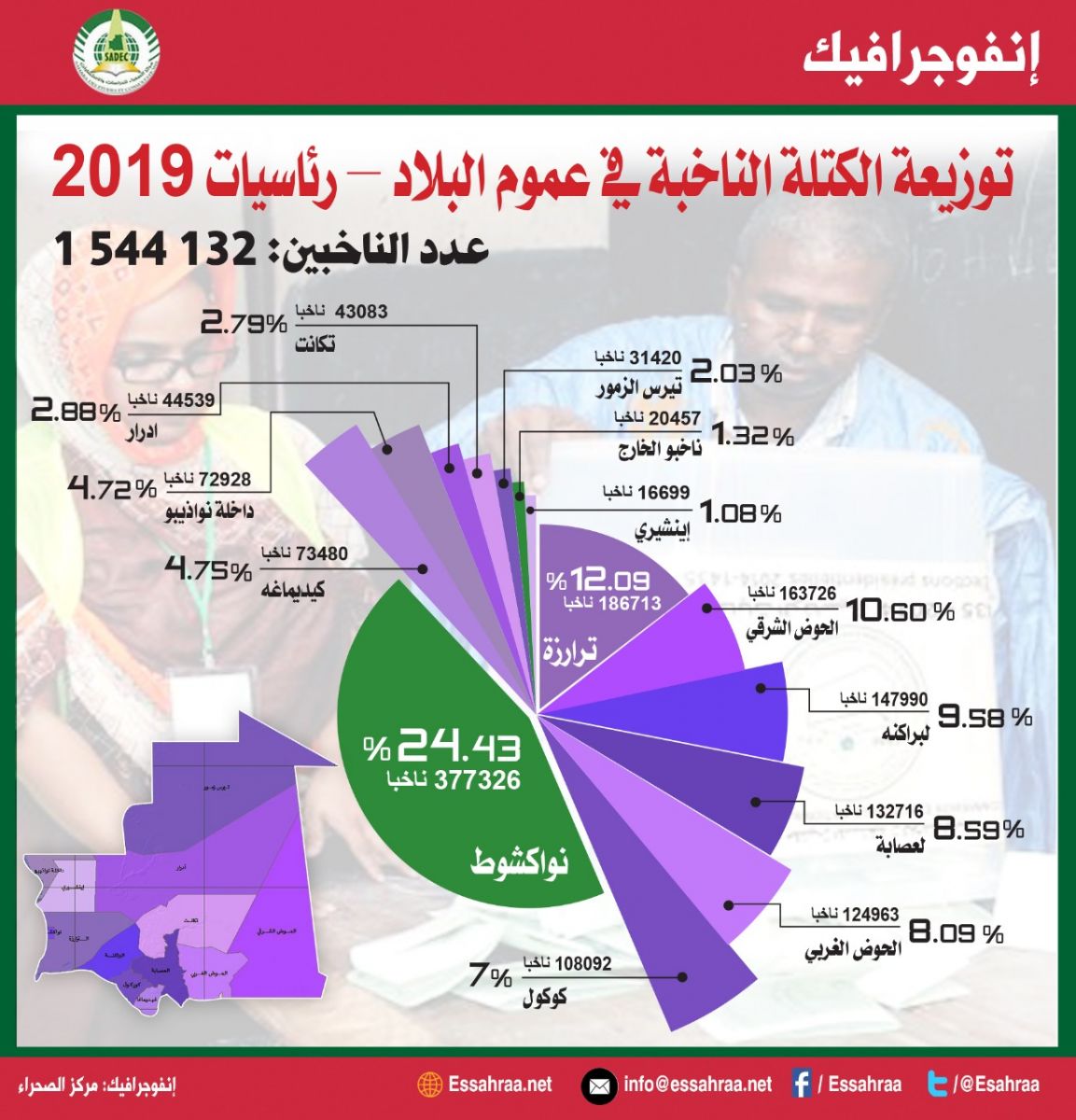 توزيعة الكتلة الناخبة بموريتانيا في رئاسيات 2019(تفاصيل)