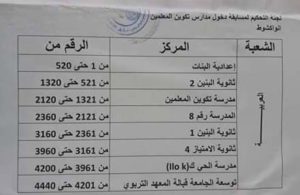 وتوضح التوزعة أدناه أسماء المراكز وأرقام المترشحين المدعوين لإجراء المسابقة داخلها يوم السبت المقبل