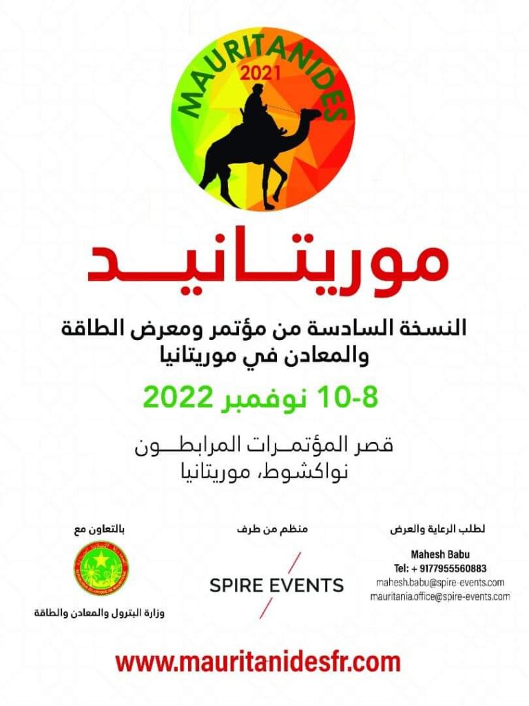 أعلنت وزارة البترول والمعادن والطاقة في موريتانيا، عن موعد جديد لتنظيم مؤتمر موريتانيد للمعادن والبترول والغاز، بالشراكة مع مؤسسة SPIRE EVENT. وقالت الوزارة إن هذا الحدث سيتم تنظيمه في الفترة ما بين 8 إلى 10 نوفمبر من العام الجاري، في المركز الدولي للمؤتمرات المرابطون، بالعاصمة نواكشوط. ويعتبر هذا الحدث أكبر …